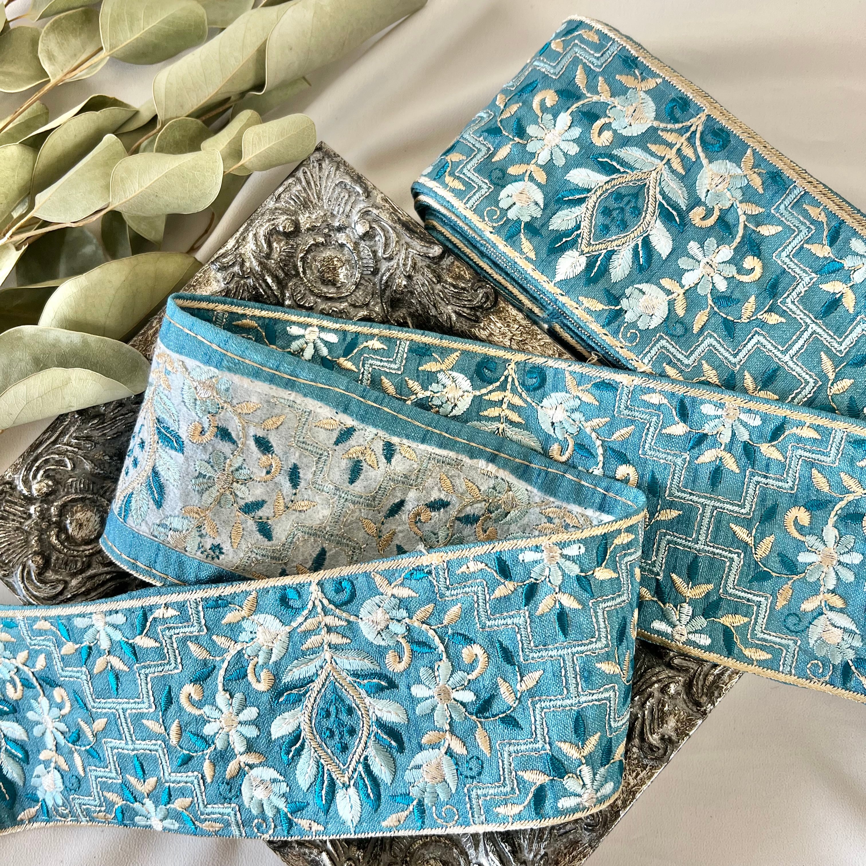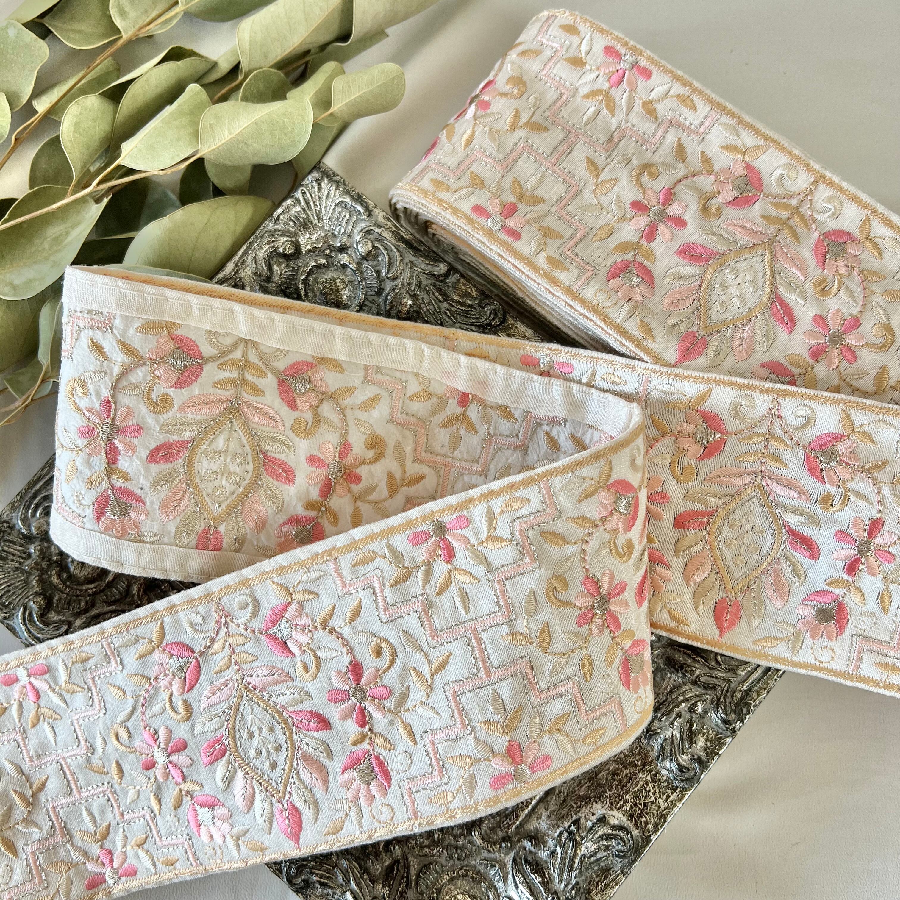 30cm インド刺繍リボン シルク 花柄 #ws4