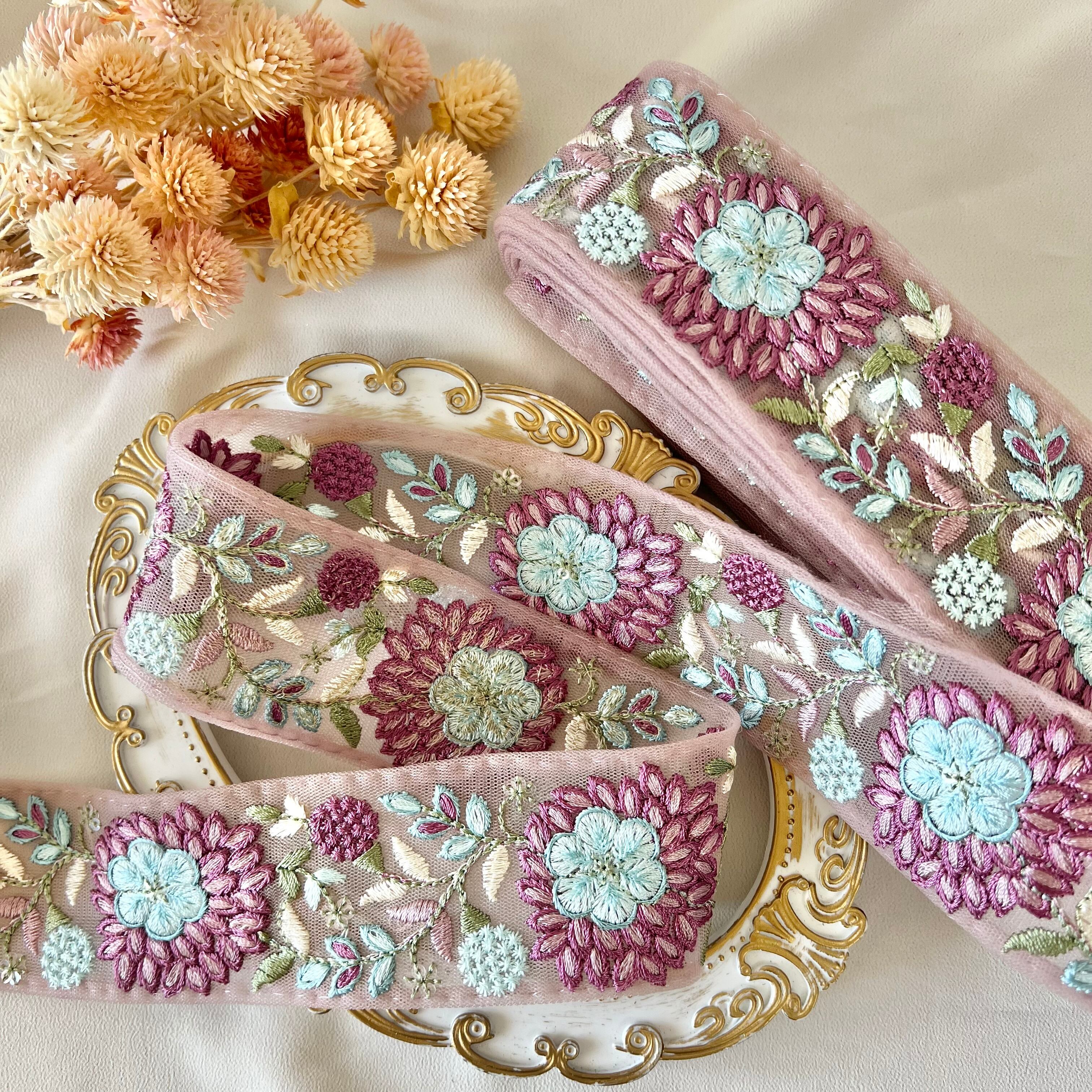 50cm インド刺繍リボン チュール 花柄 #mt1