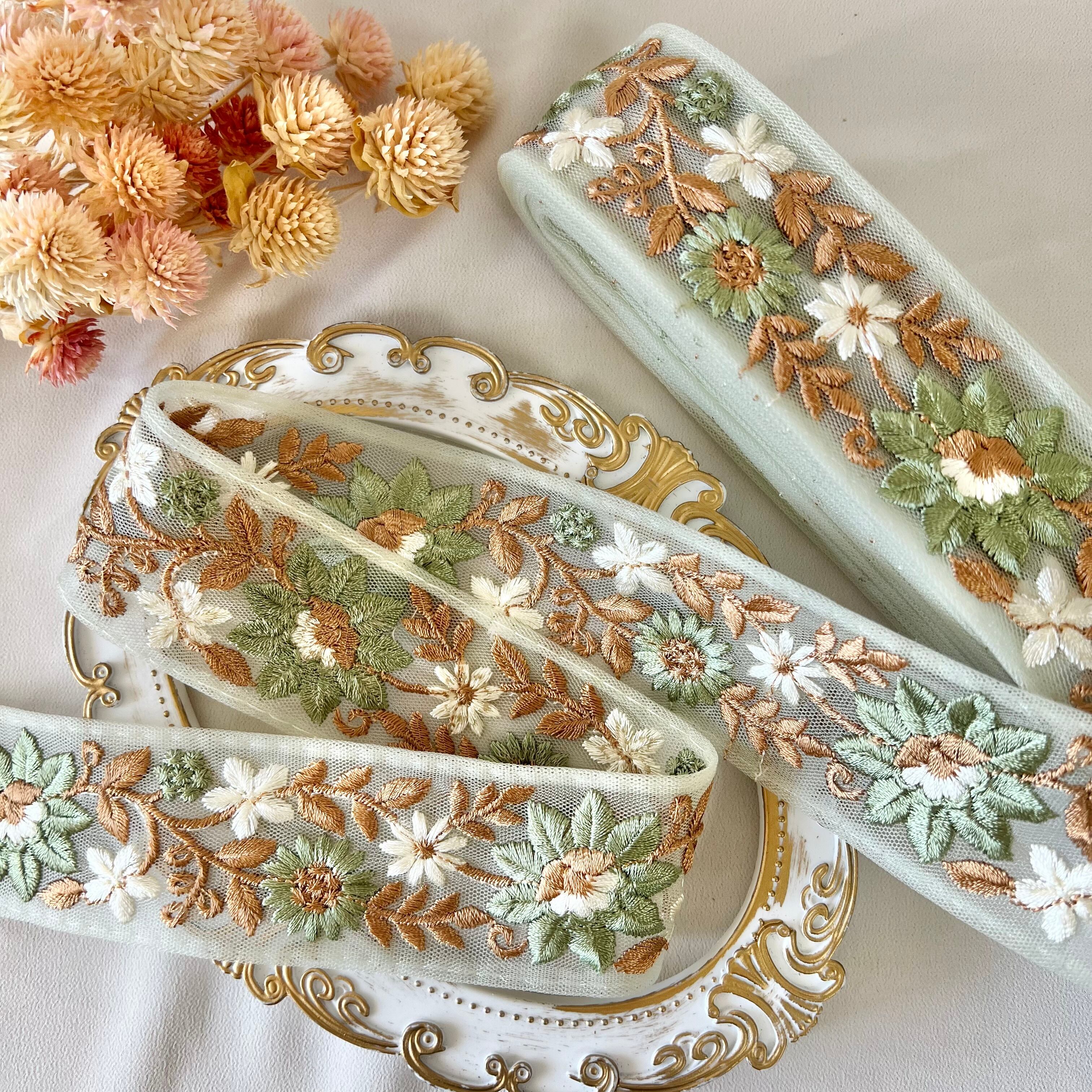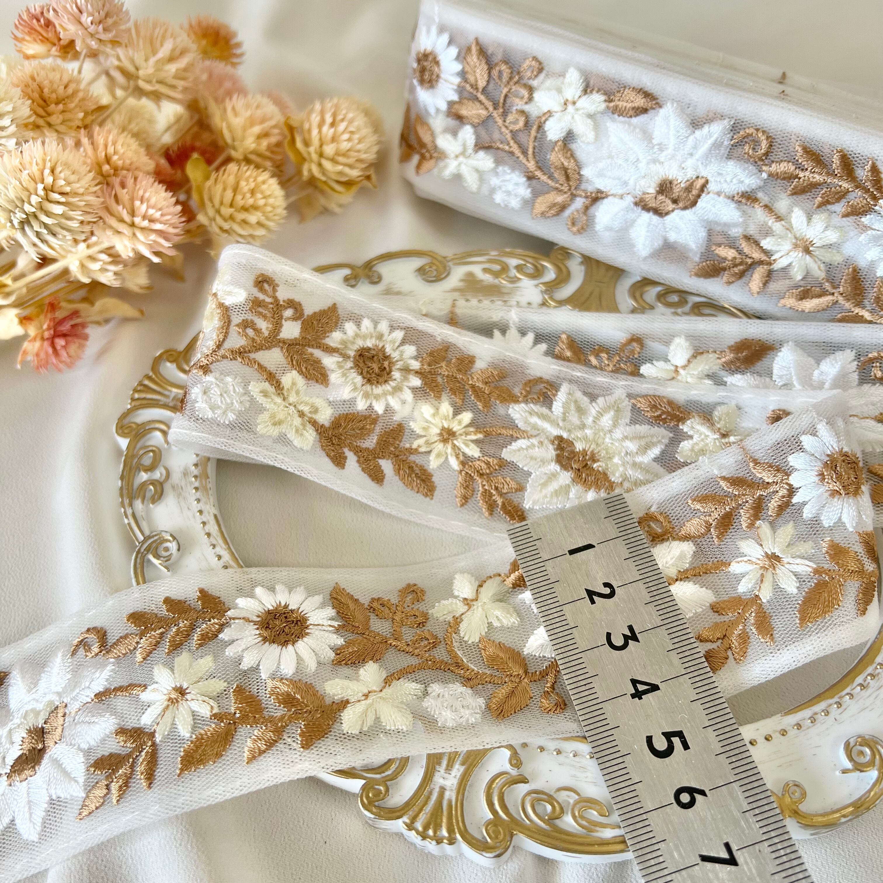 50cm インド刺繍リボン チュール 花柄 #n2t3