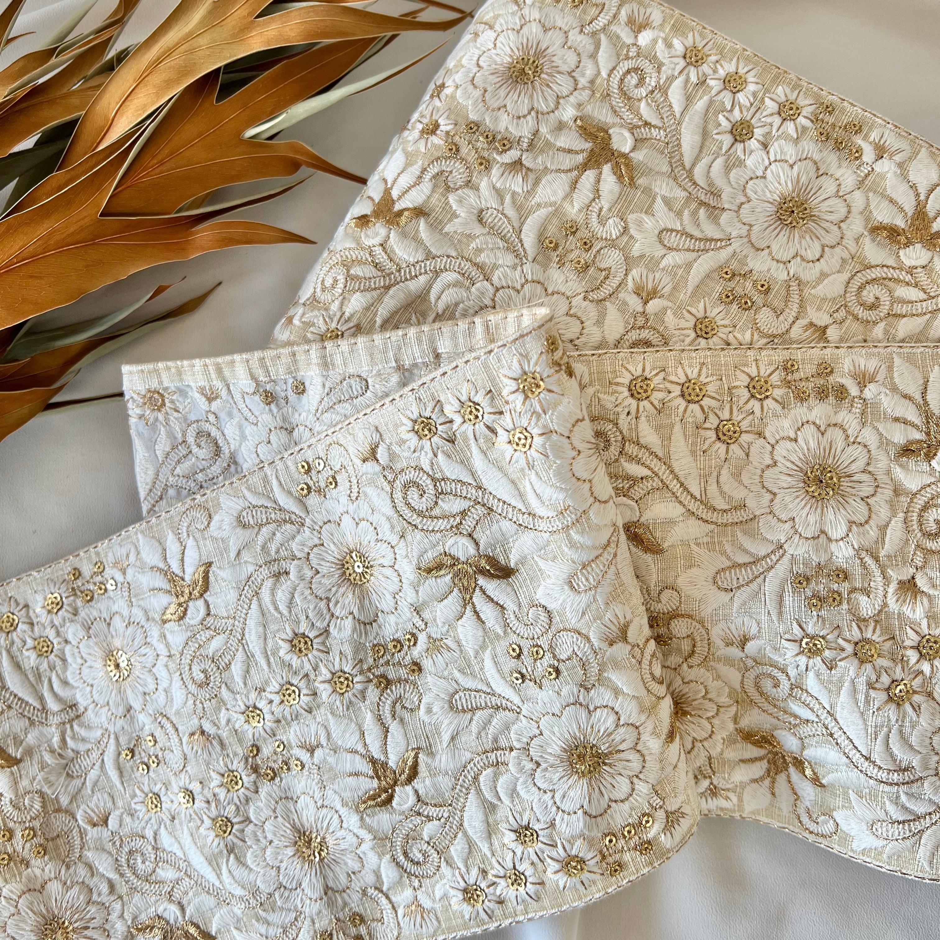 50cm インド刺繍リボン シルク 幅広花柄 #ws6