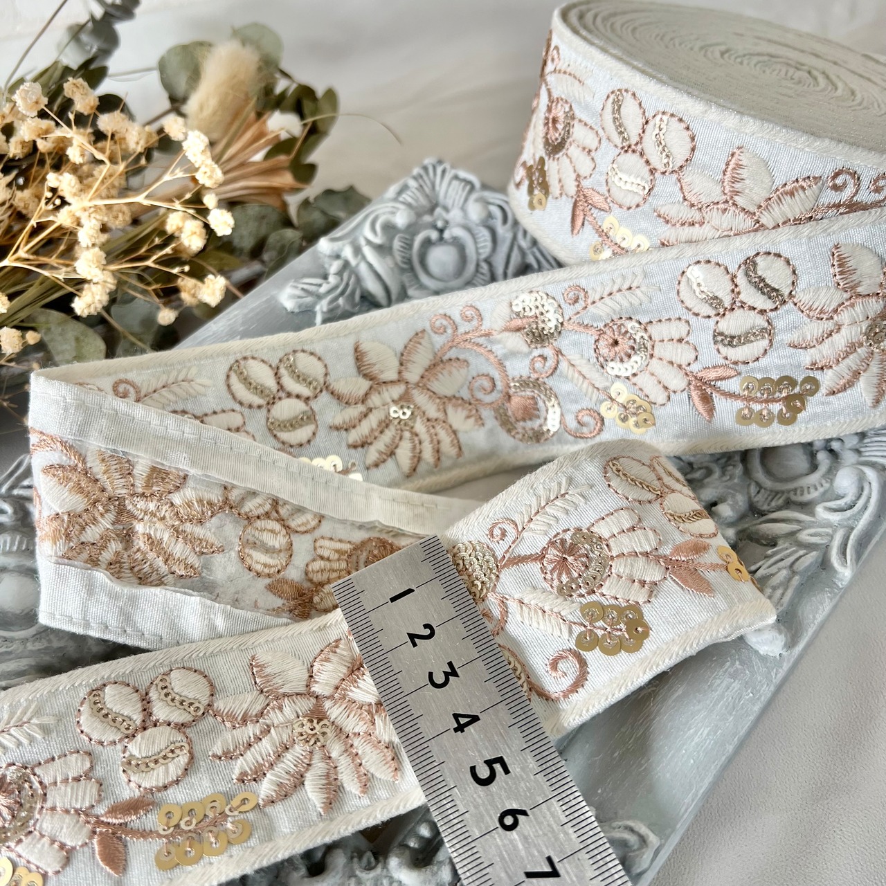50cm インド刺繍リボン シルク 花柄 #ms3