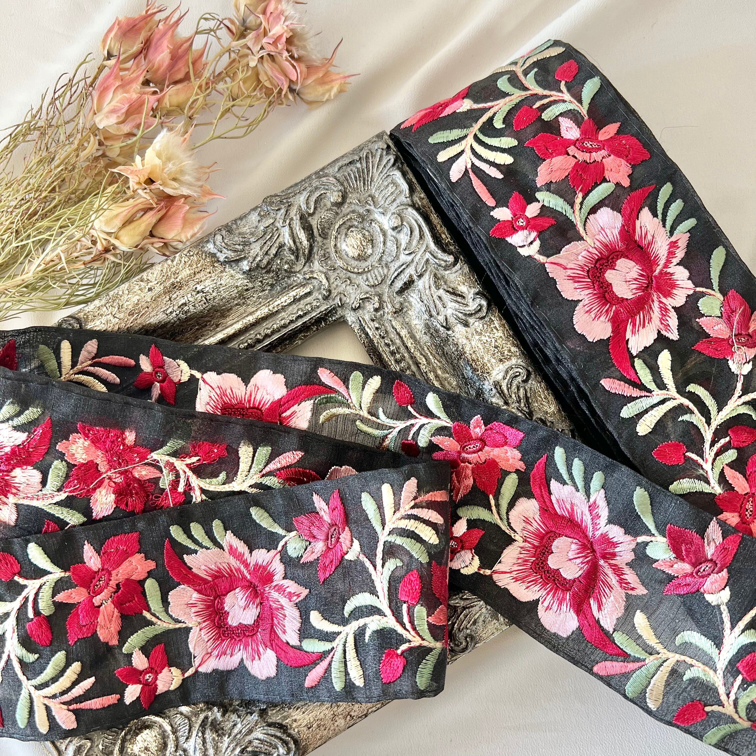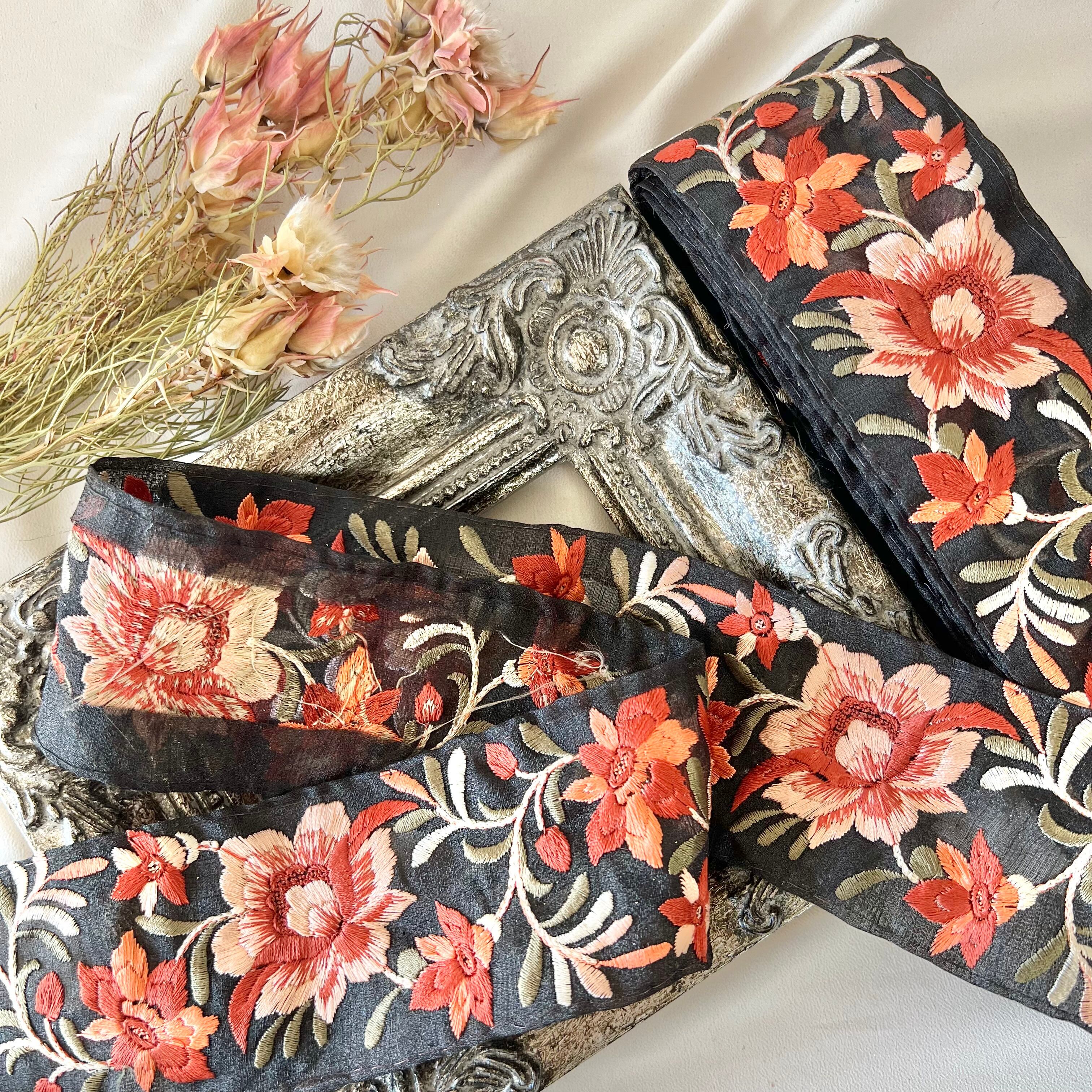 30cm インド刺繍リボン チュール 花柄 #mt3