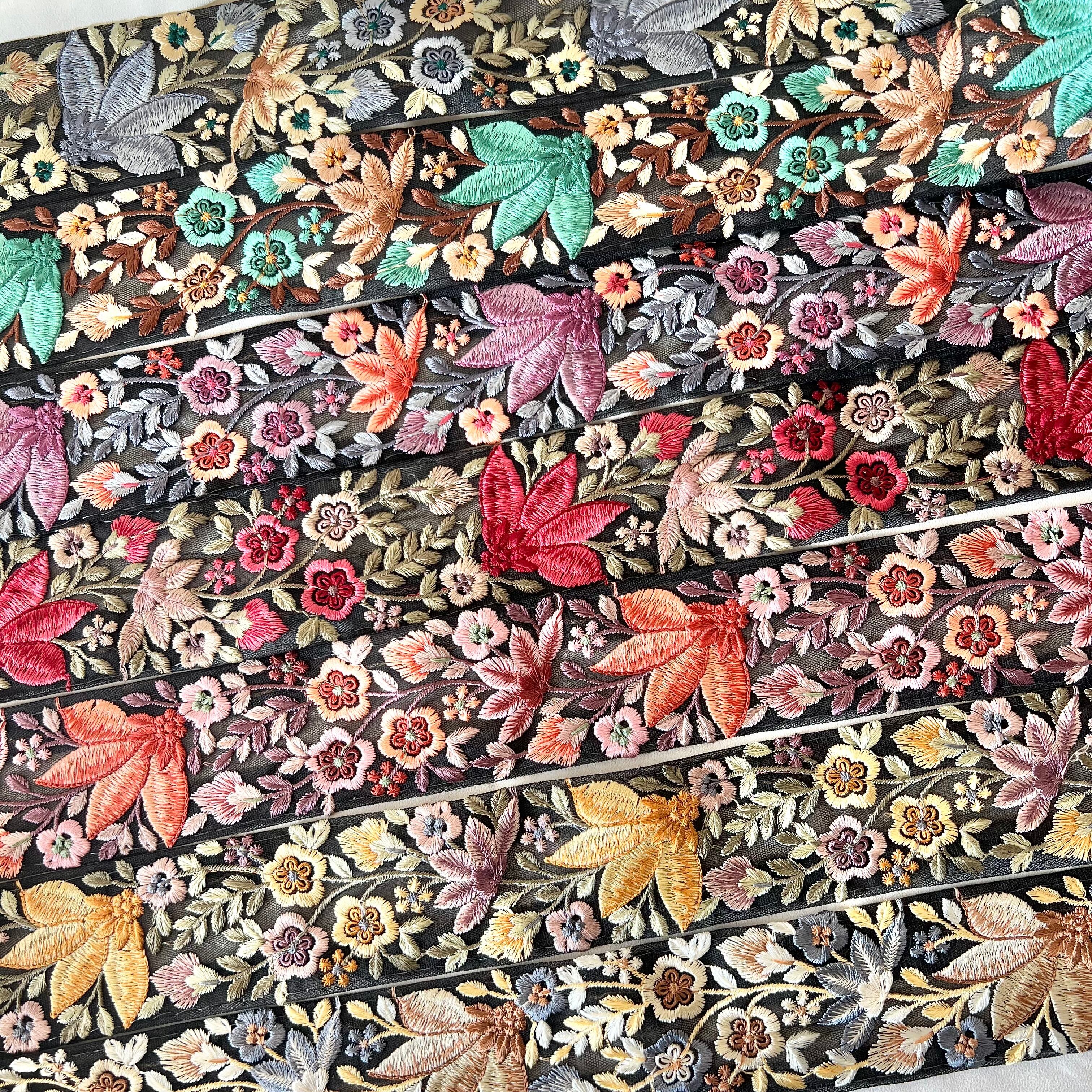 50cm インド刺繍リボン チュール 花柄 #wt6