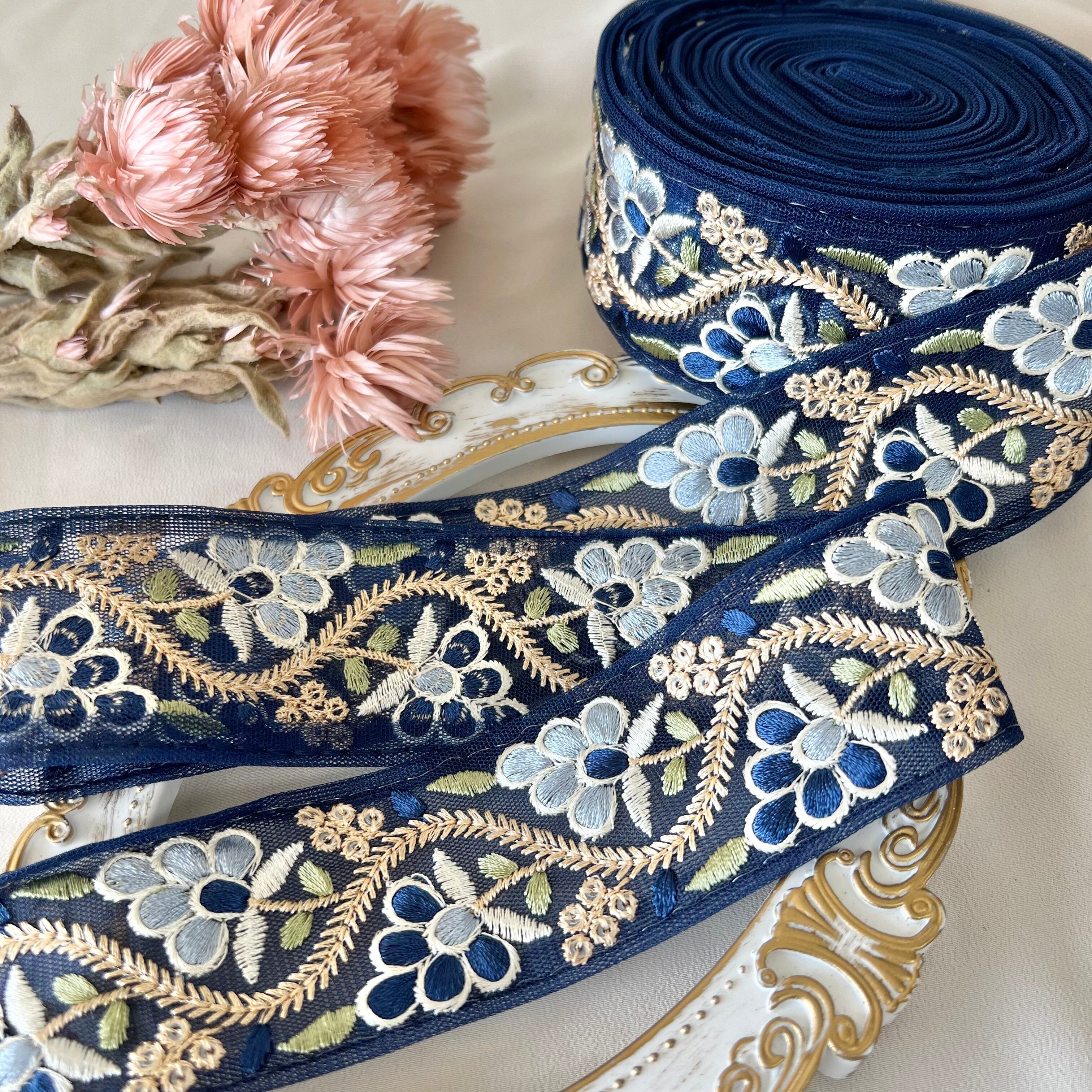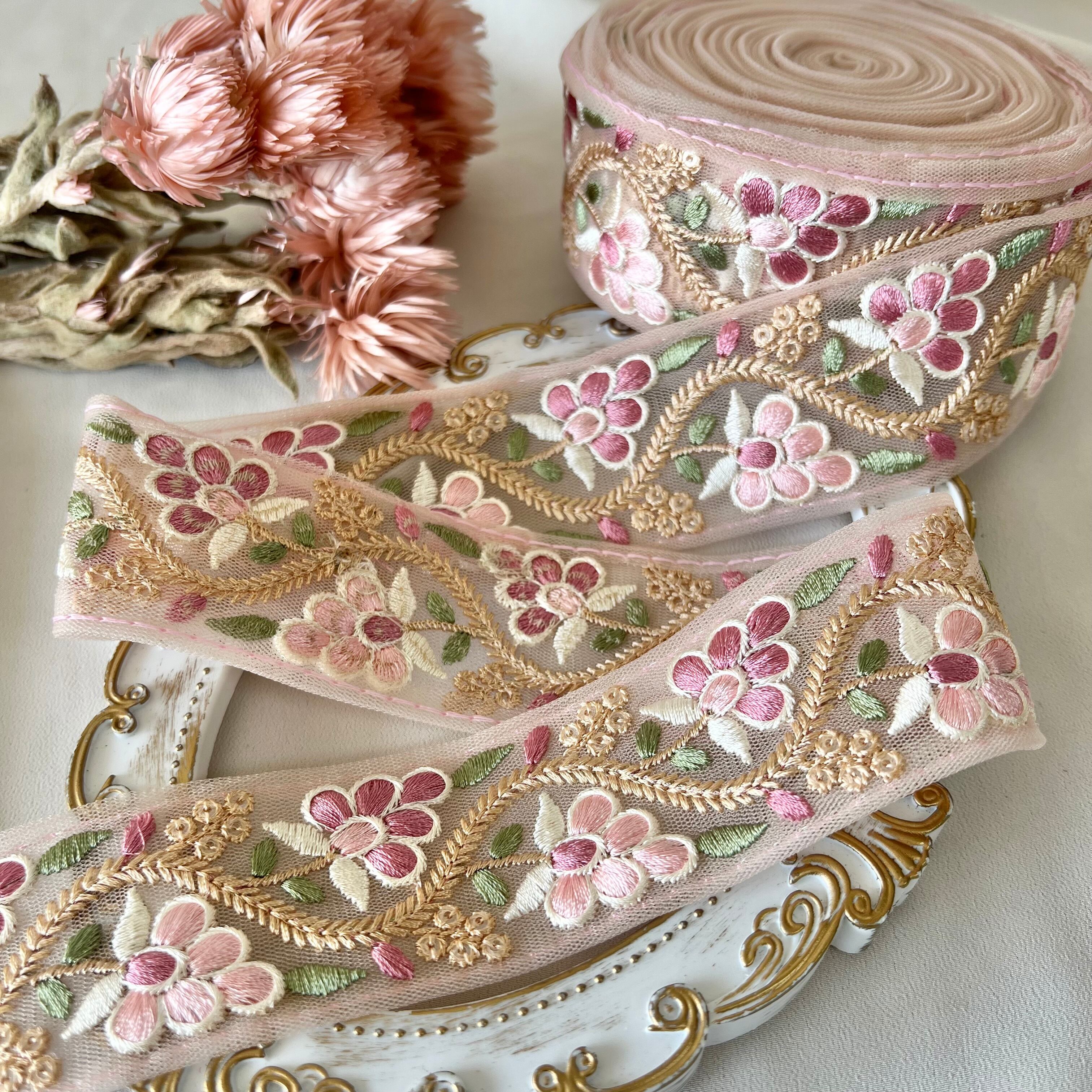 50cm インド刺繍リボン チュール 花柄 #mt8