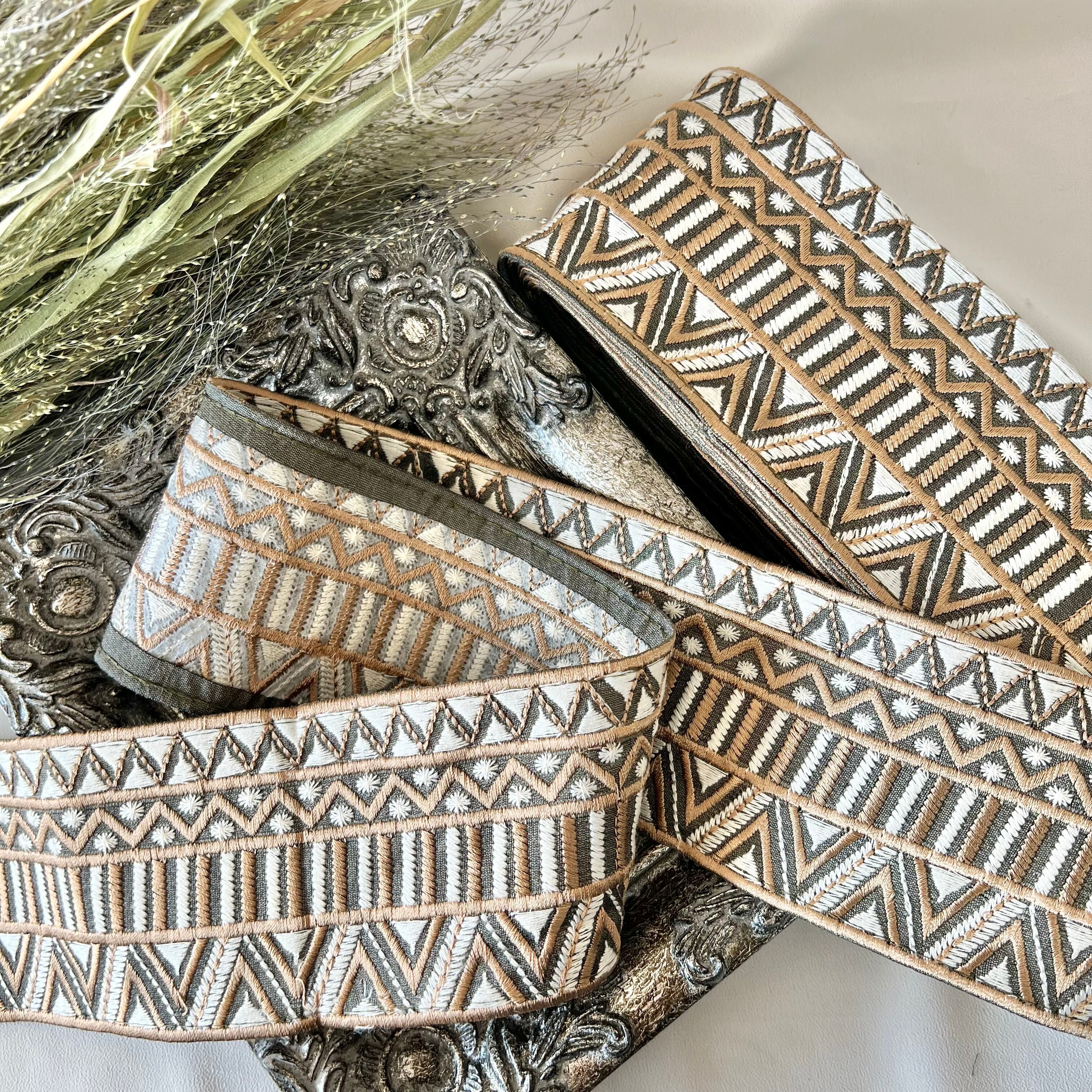 50cm インド刺繍リボン シルク ギザギザ柄 #ws9