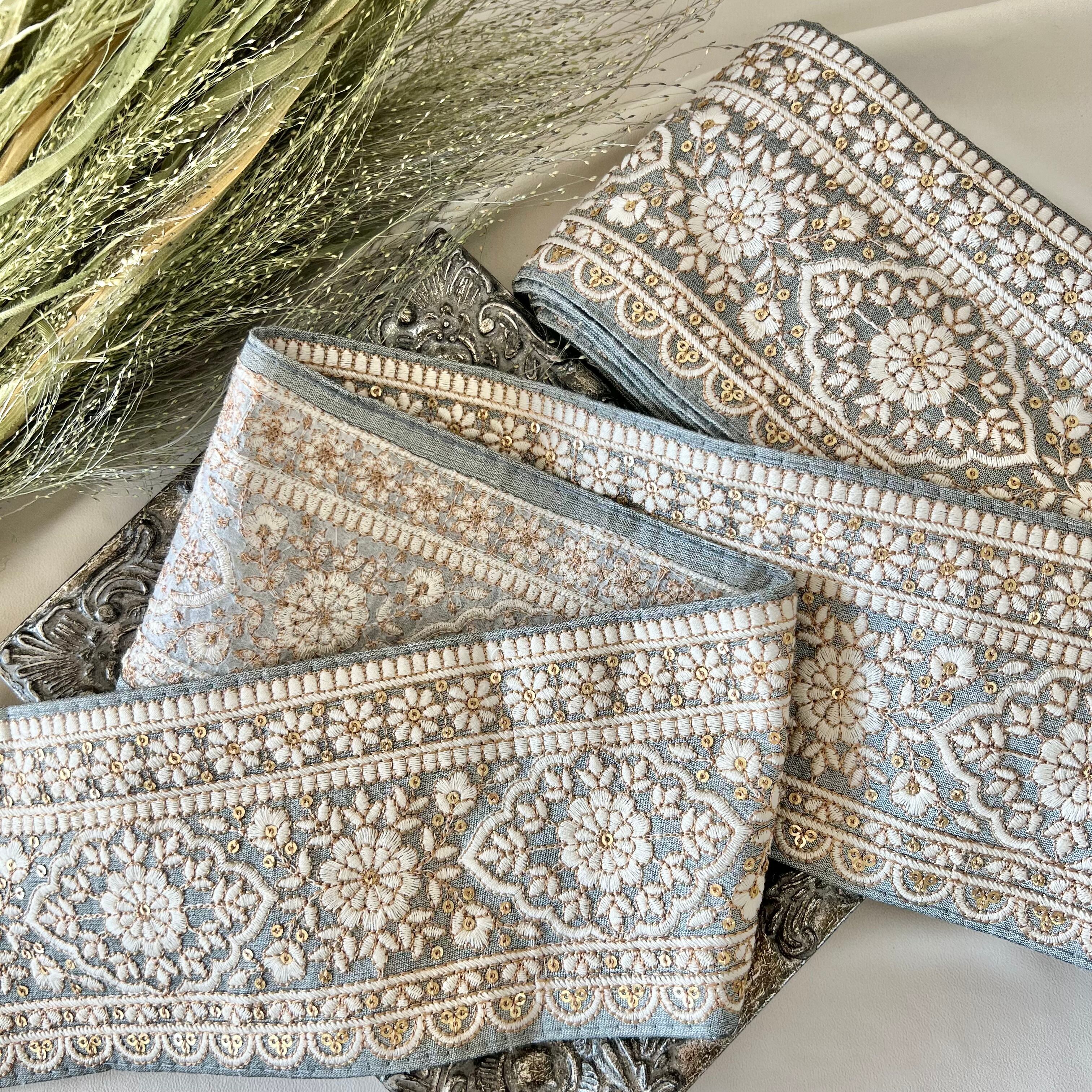 30cm インド刺繍リボン シルク 花柄 #ws11