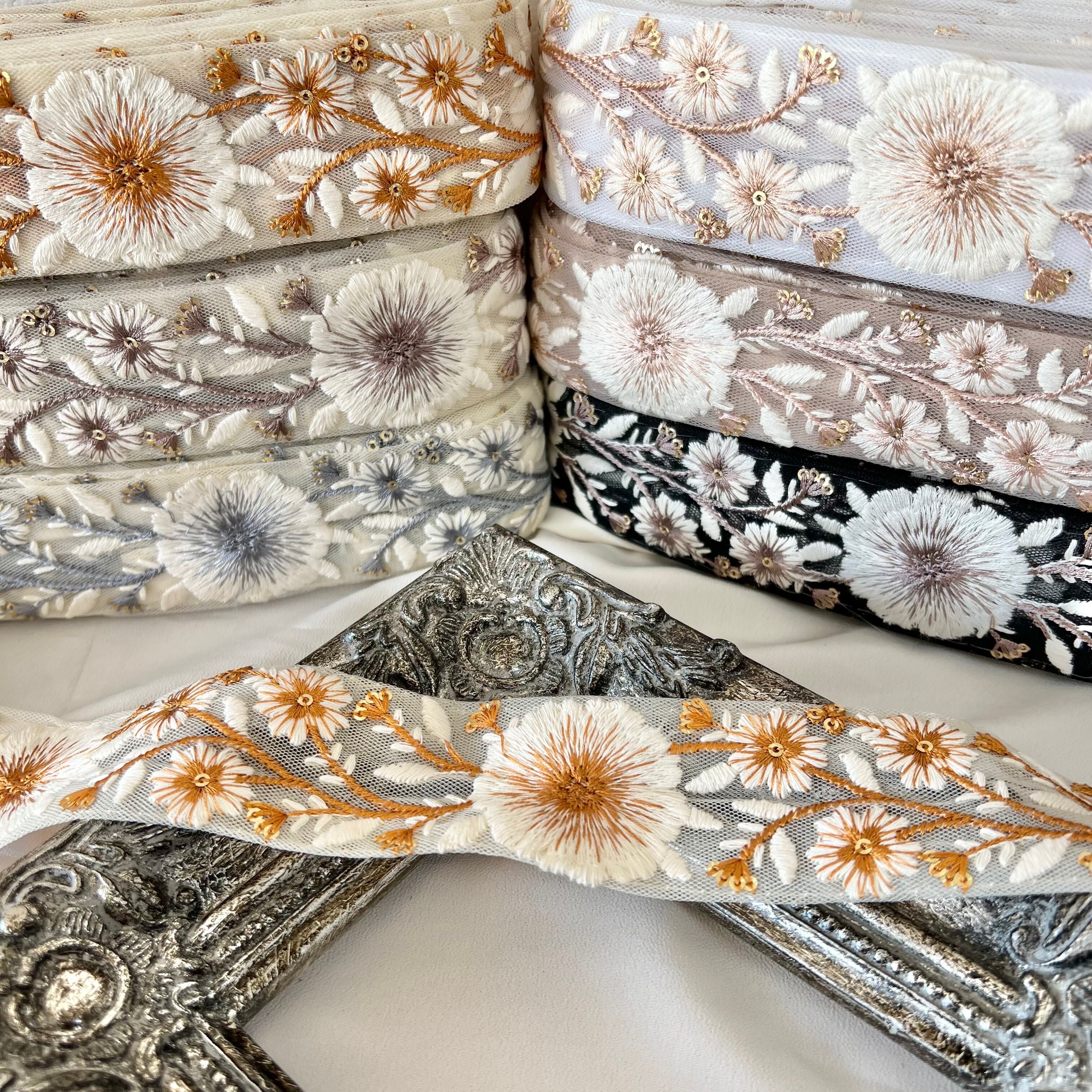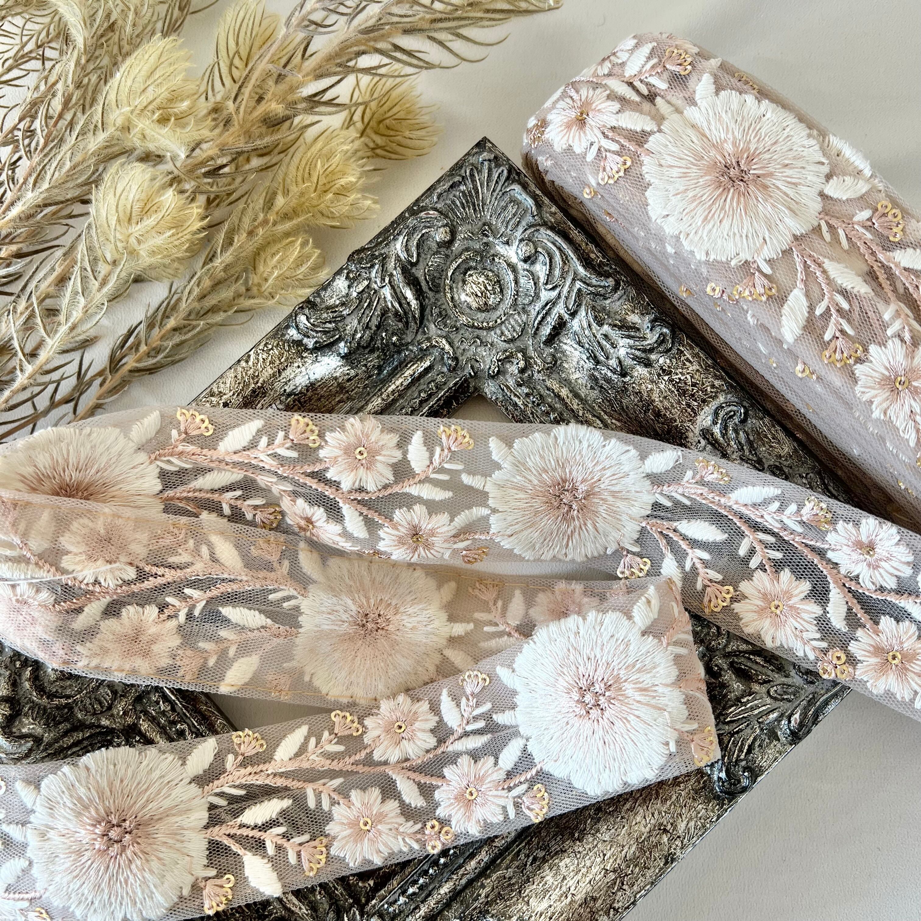 50cm インド刺繍リボン チュール 花柄 #mt51