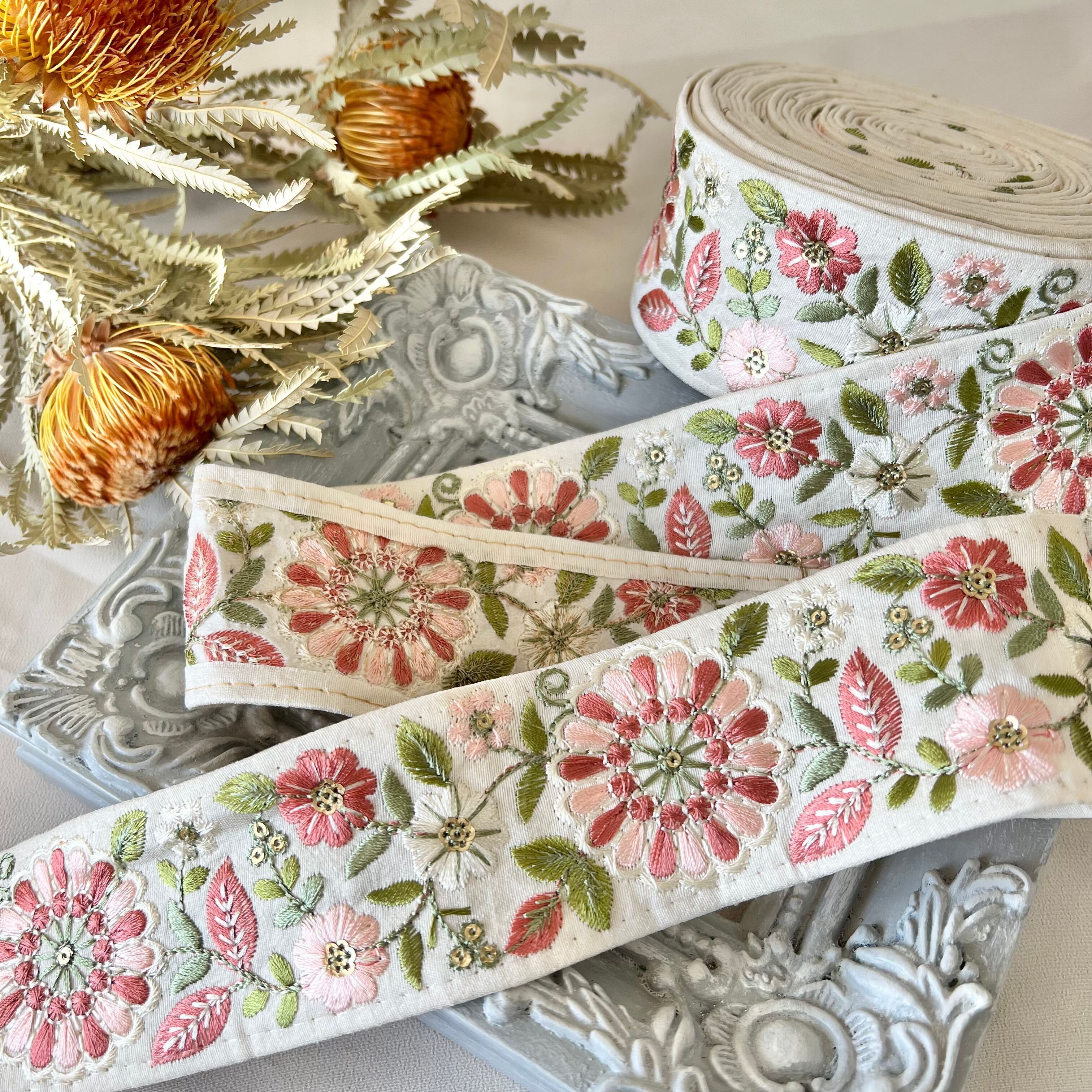 50cm インド刺繍リボン シルク 花柄 #ms32