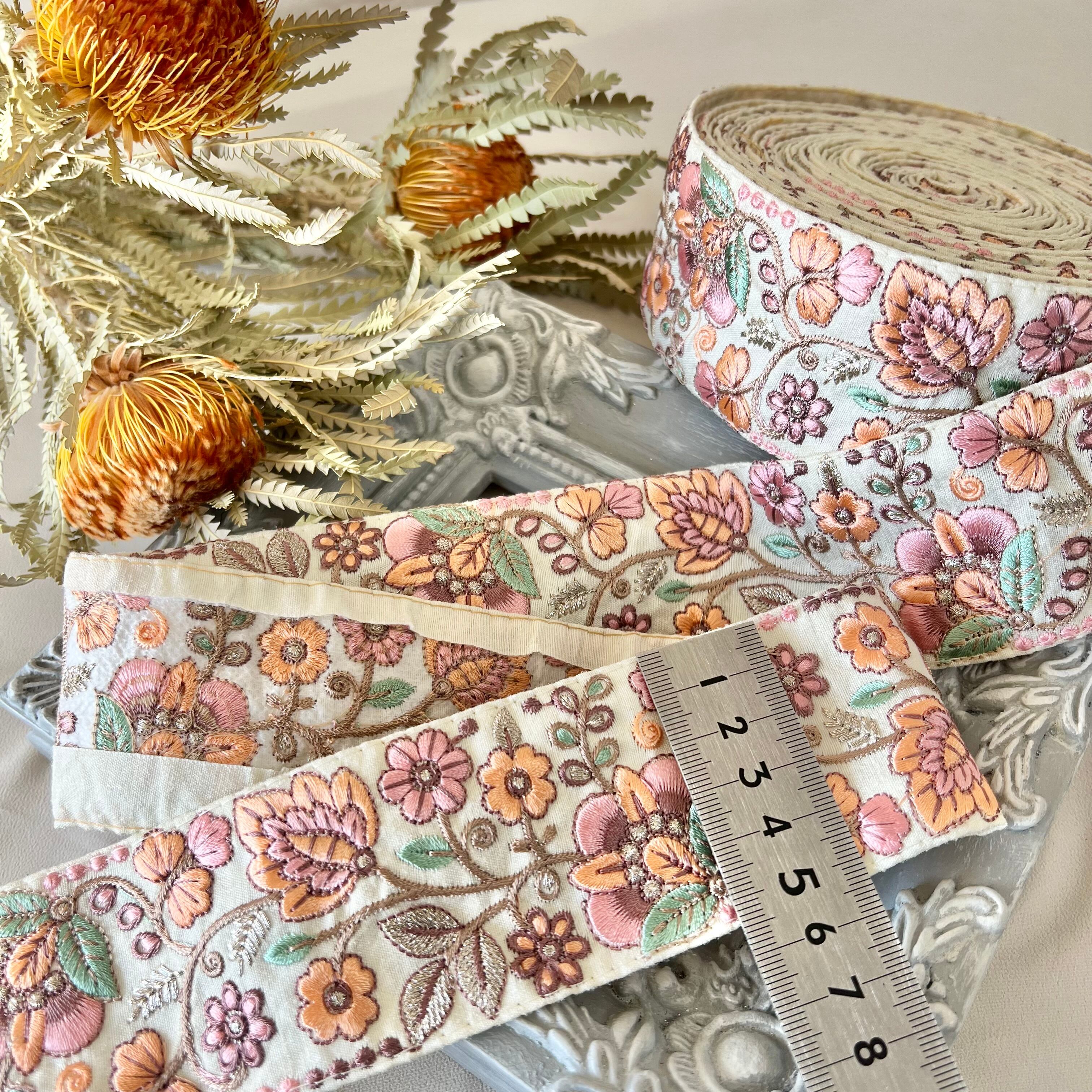 30cm インド刺繍リボン シルク 花柄 #ms34