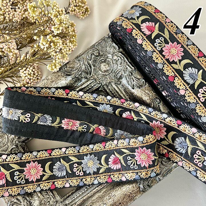 50cm インド刺繍リボン シルク 花柄 #ms28
