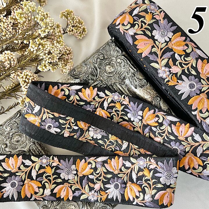 50cm インド刺繍リボン シルク 花柄 #ms30