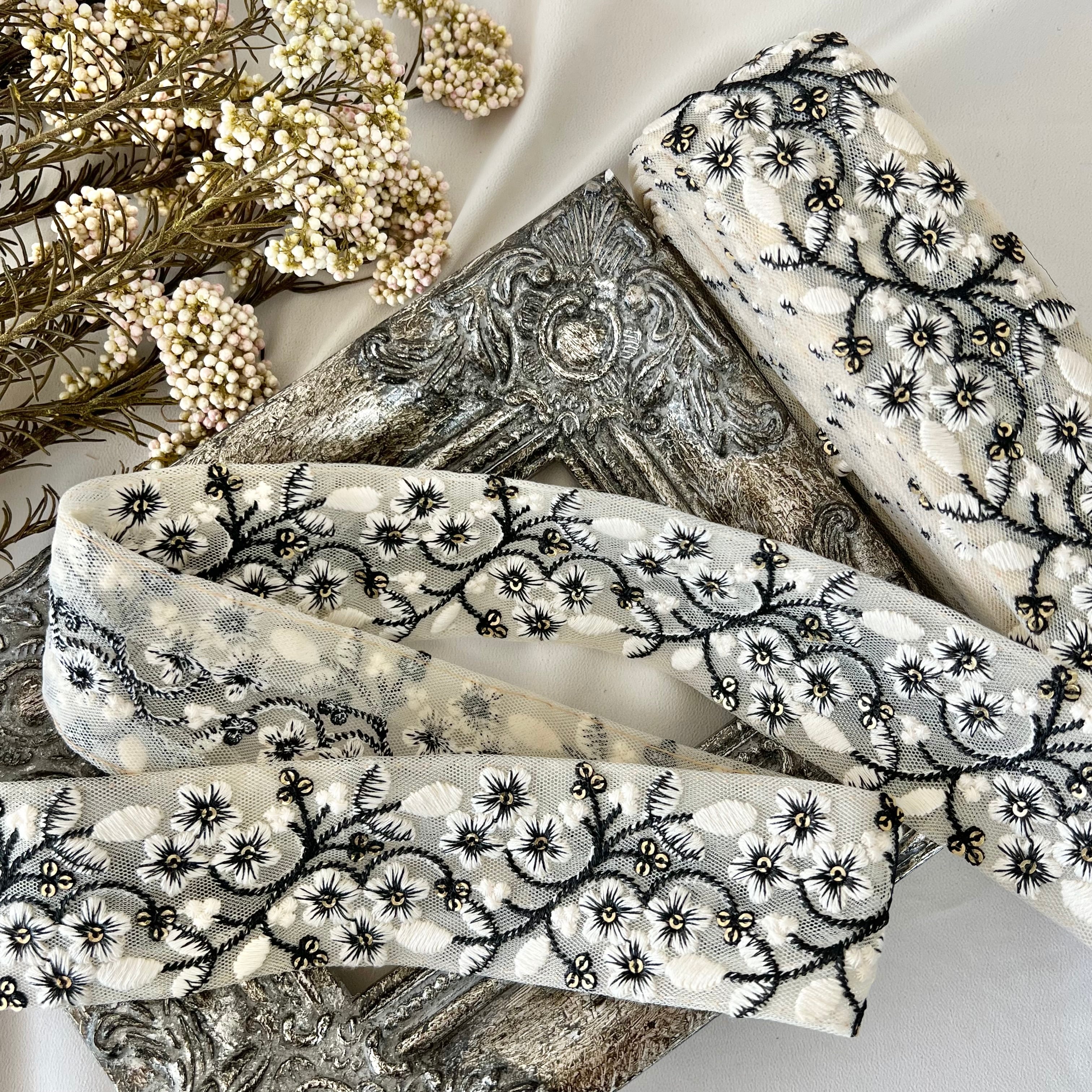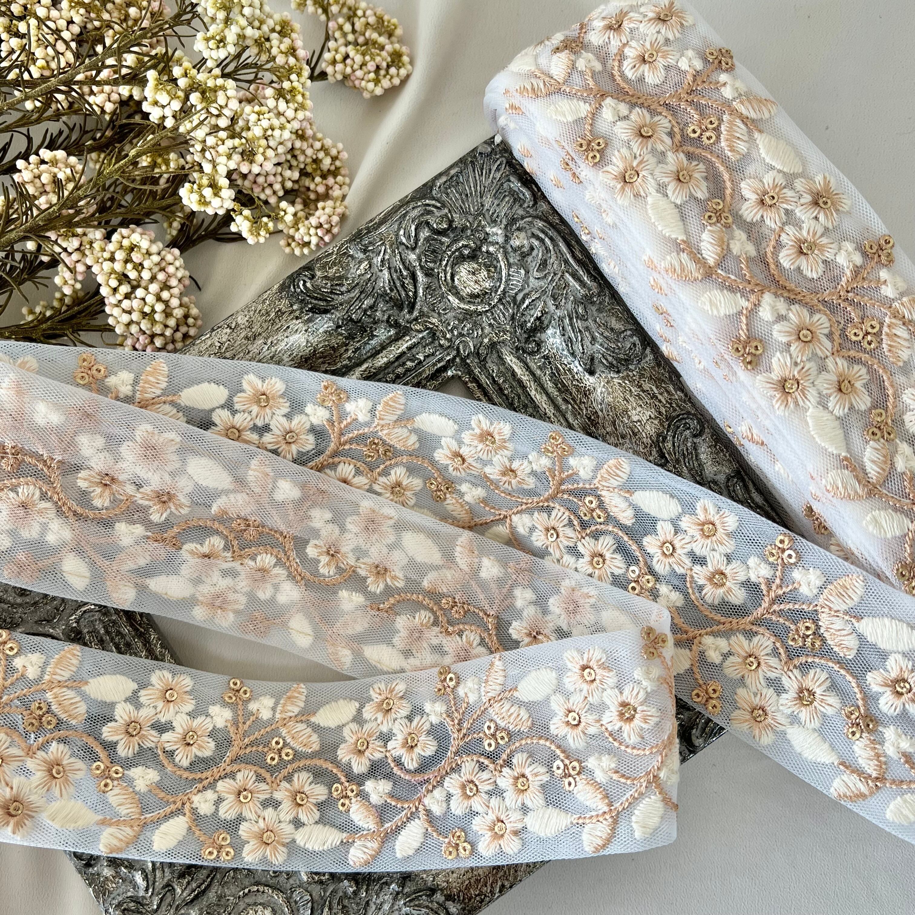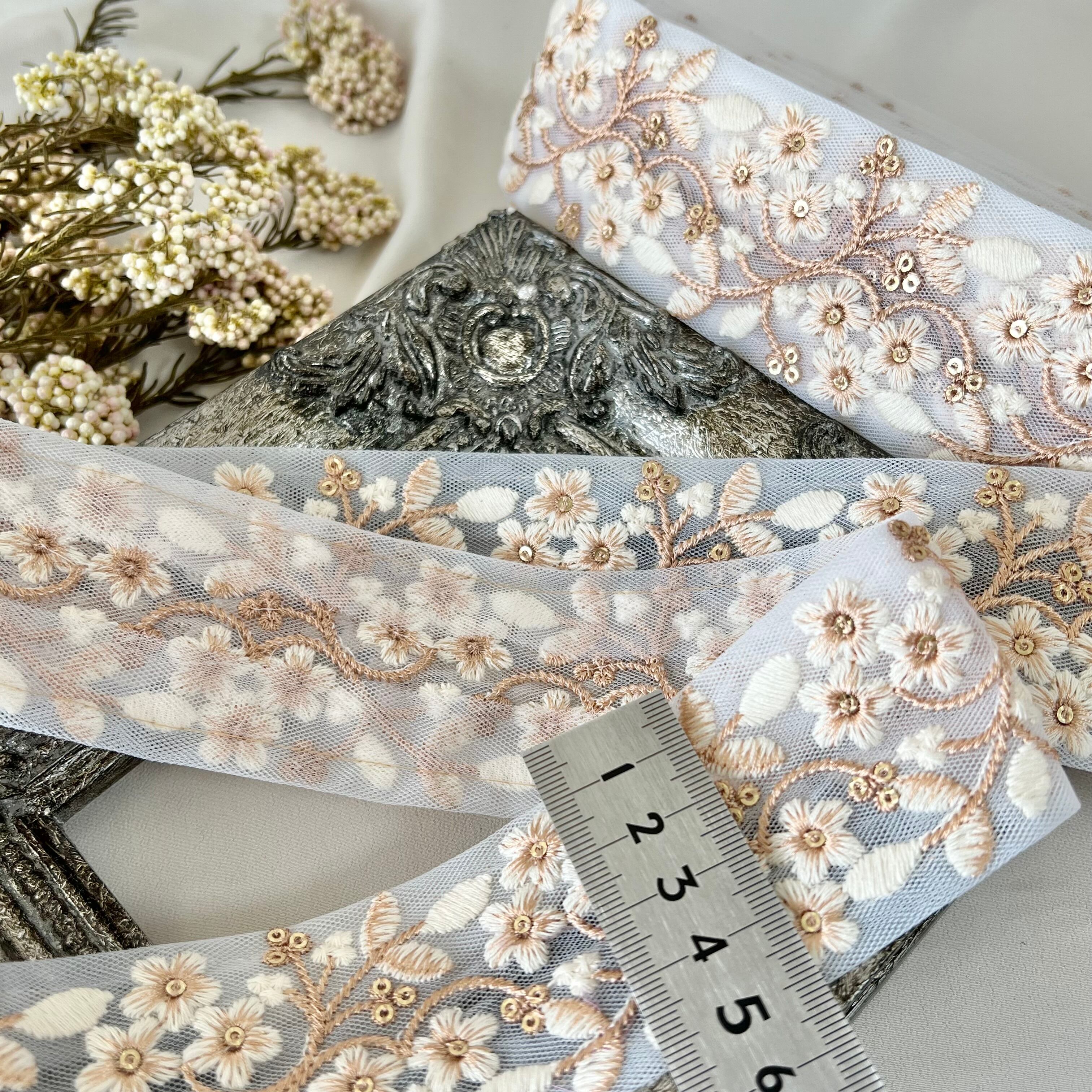 50cm インド刺繍リボン チュール 小花柄 #mt53