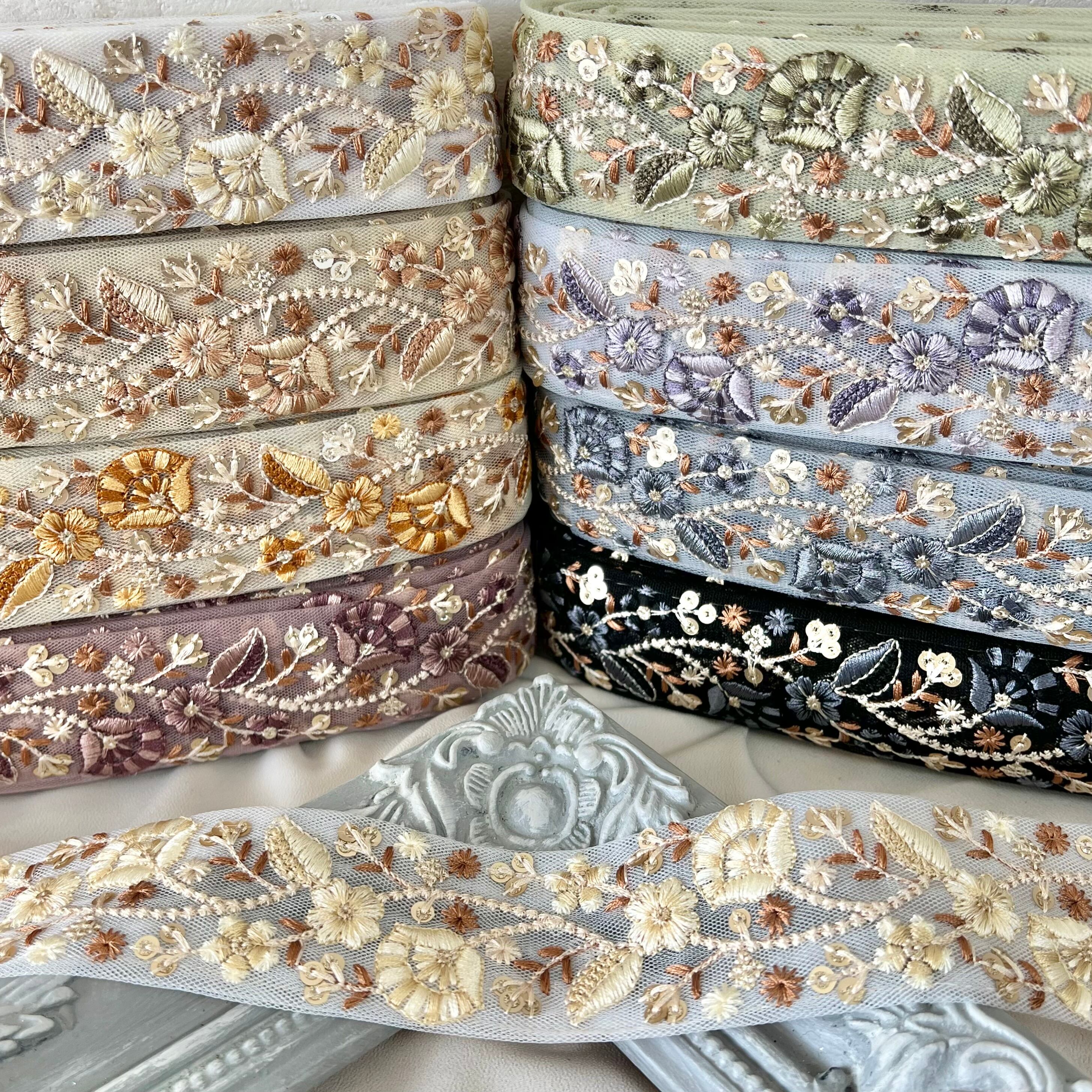 50cm インド刺繍リボン チュール 花柄 #mt54