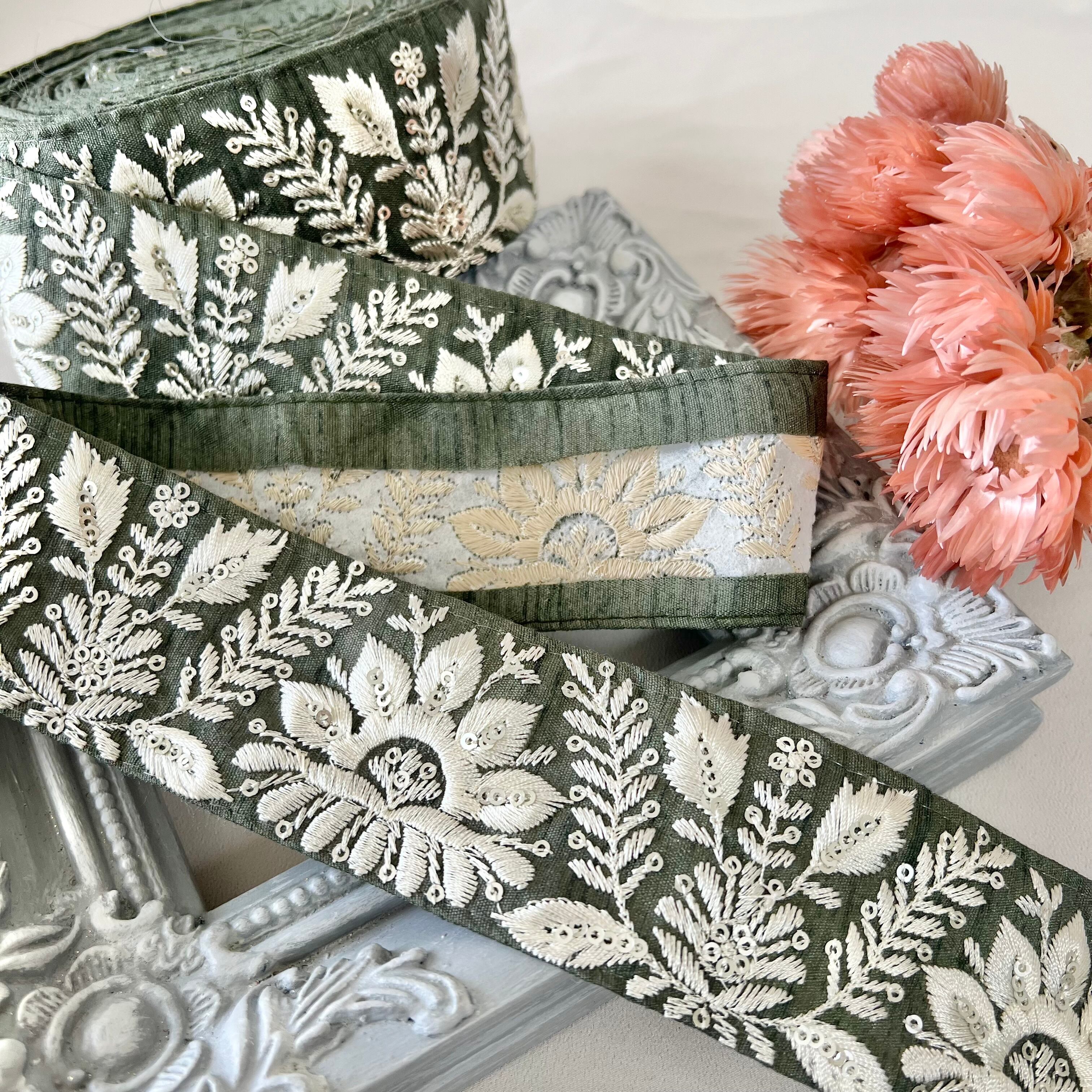 50cm インド刺繍リボン シルク 花柄 #ms37