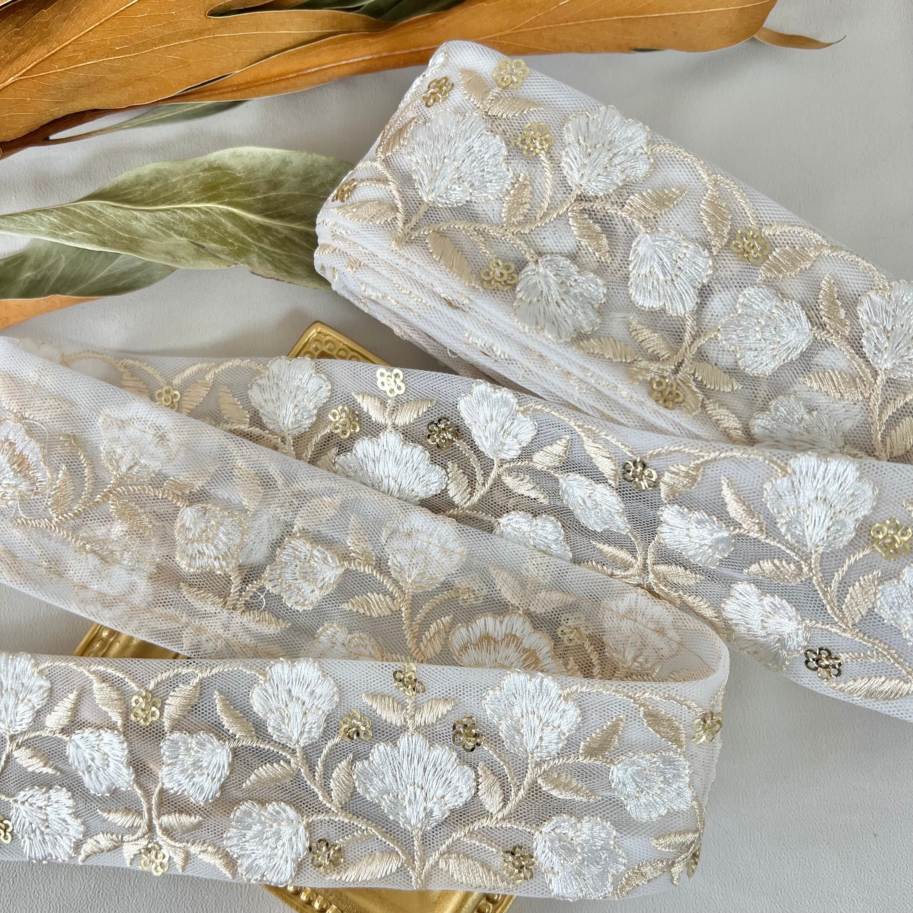 50cm インド刺繍リボン チュール 花柄 #mt56