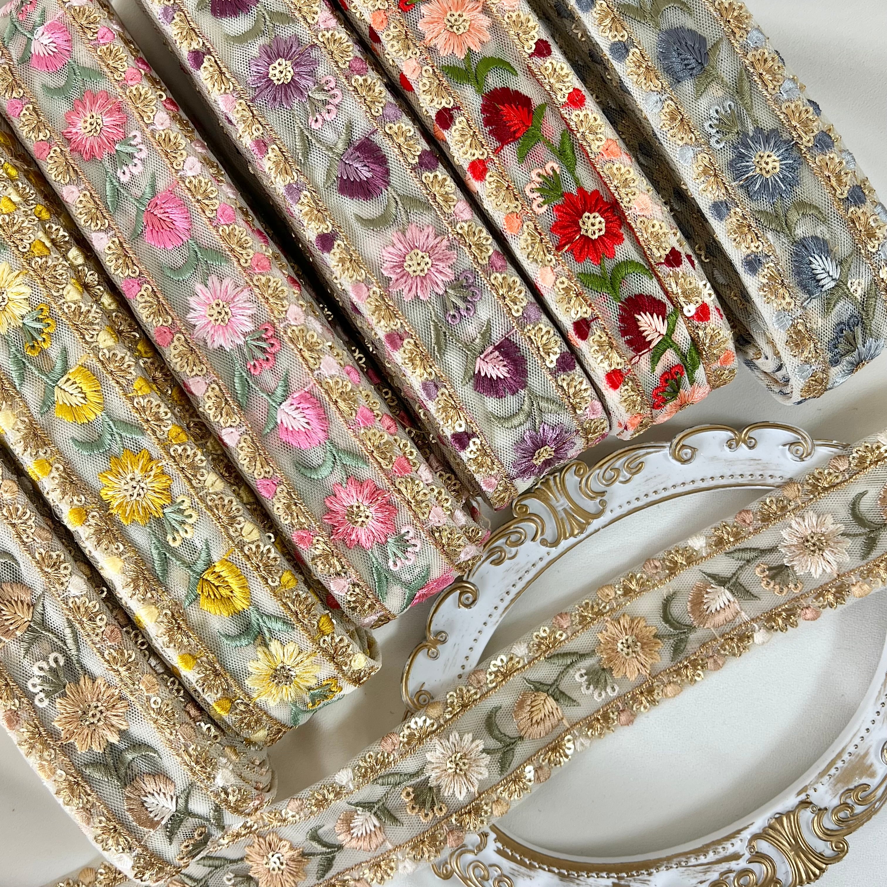 50cm インド刺繍リボン チュール 花柄 #mt57