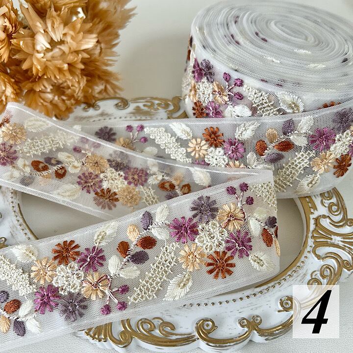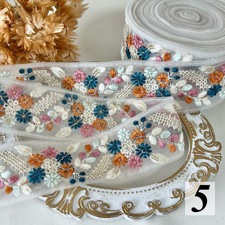 50cm インド刺繍リボン チュール 花柄 #ct38
