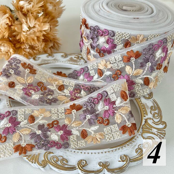 50cm インド刺繍リボン チュール 花柄 #ct39