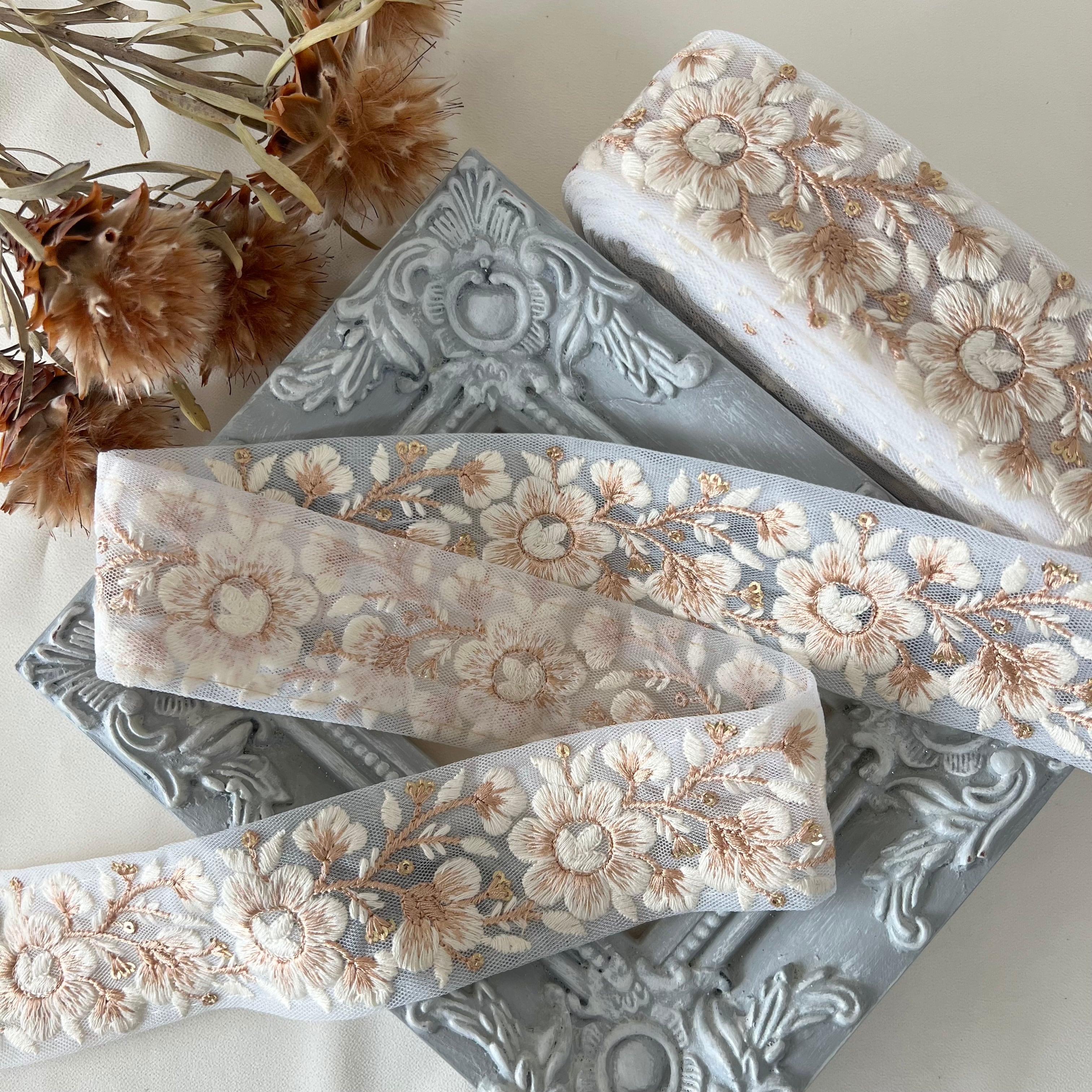 50cm インド刺繍リボン チュール 花柄 #mt58