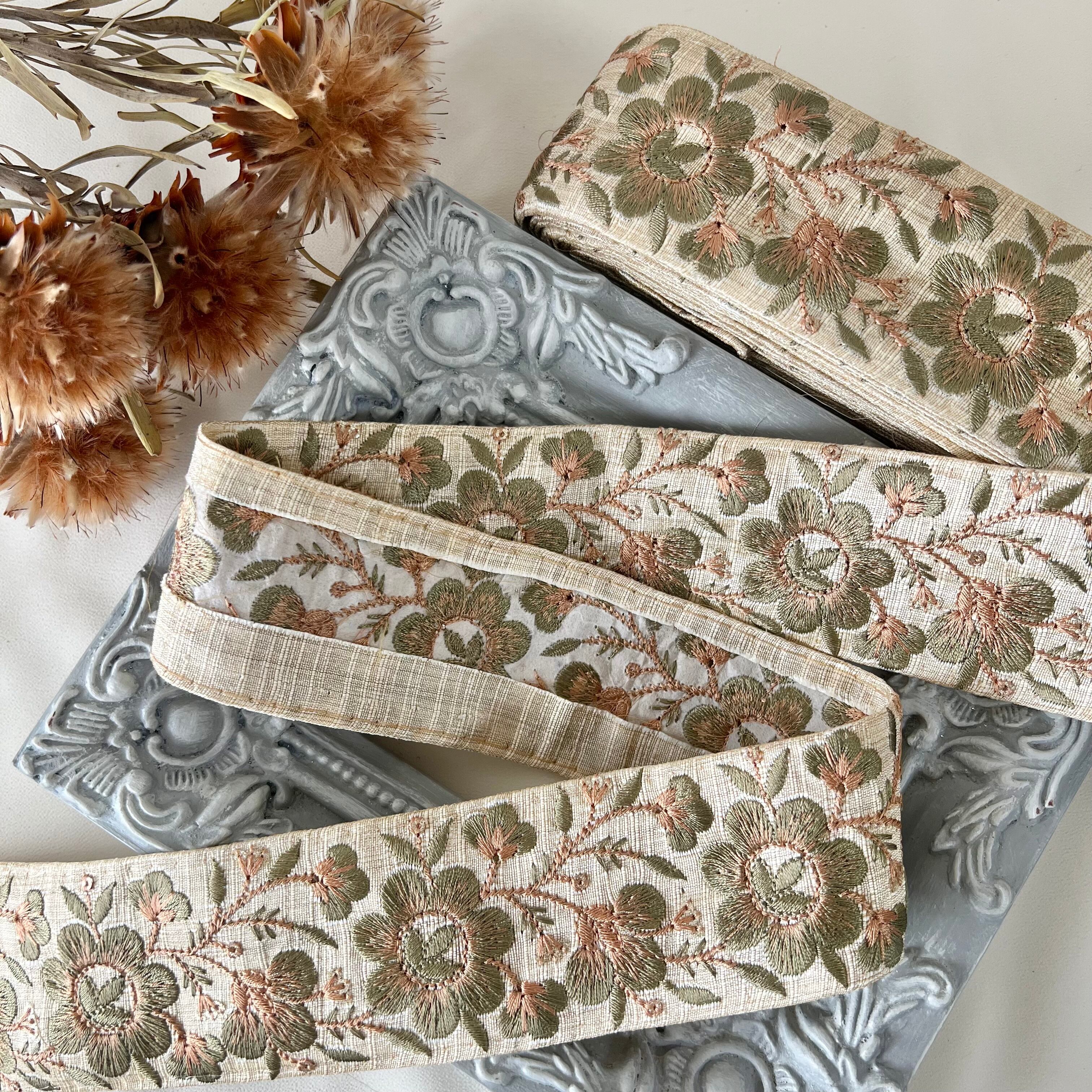 50cm インド刺繍リボン シルク 花柄 #ms42