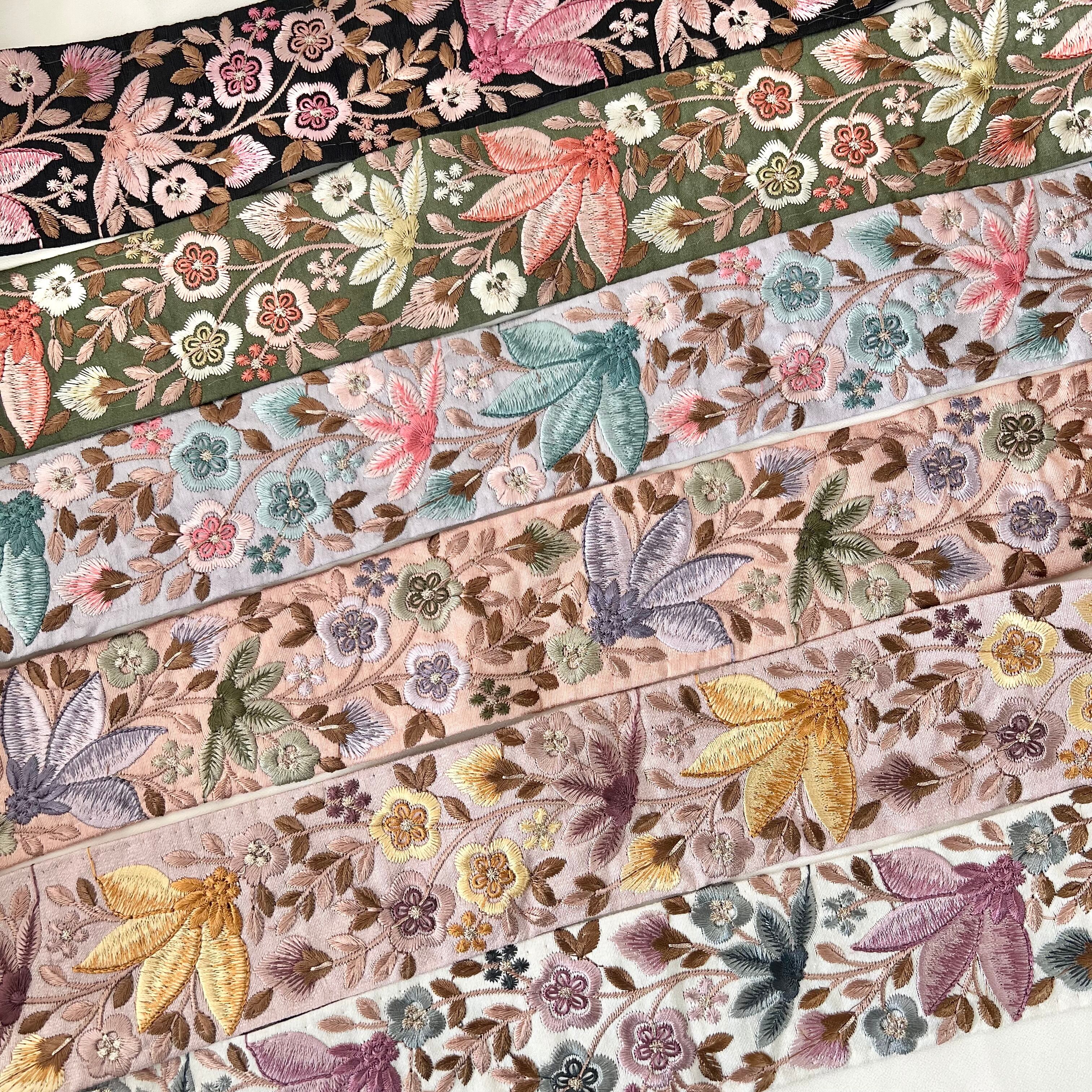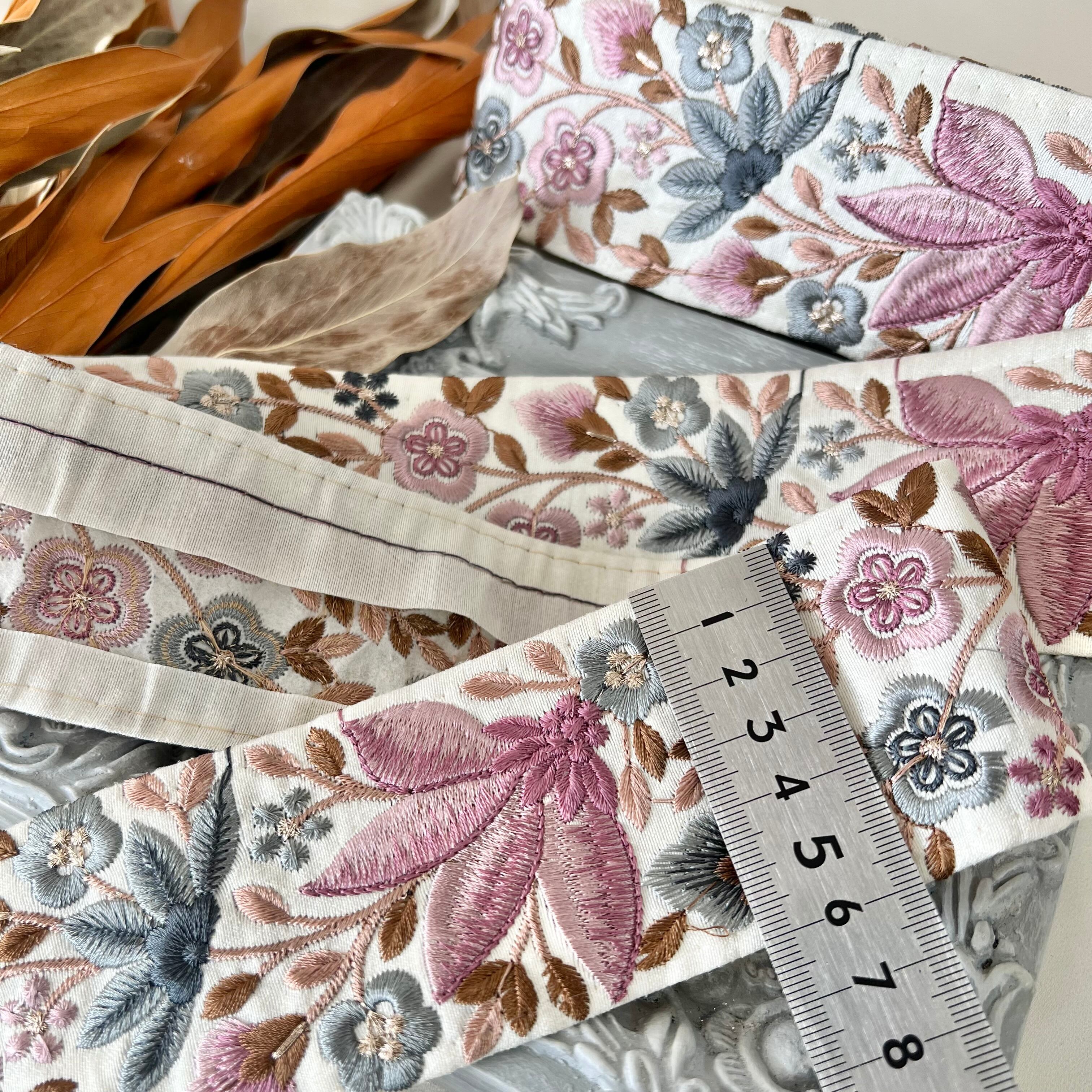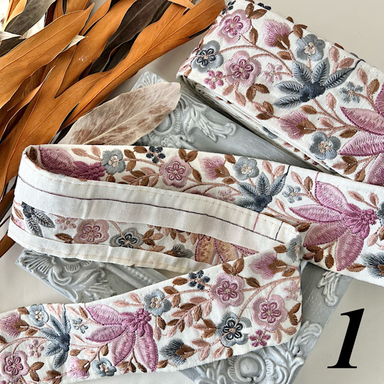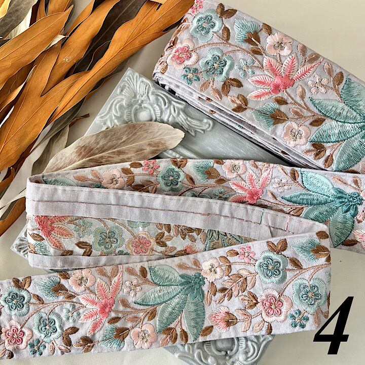 30cm インド刺繍リボン シルク 花柄 #ws35