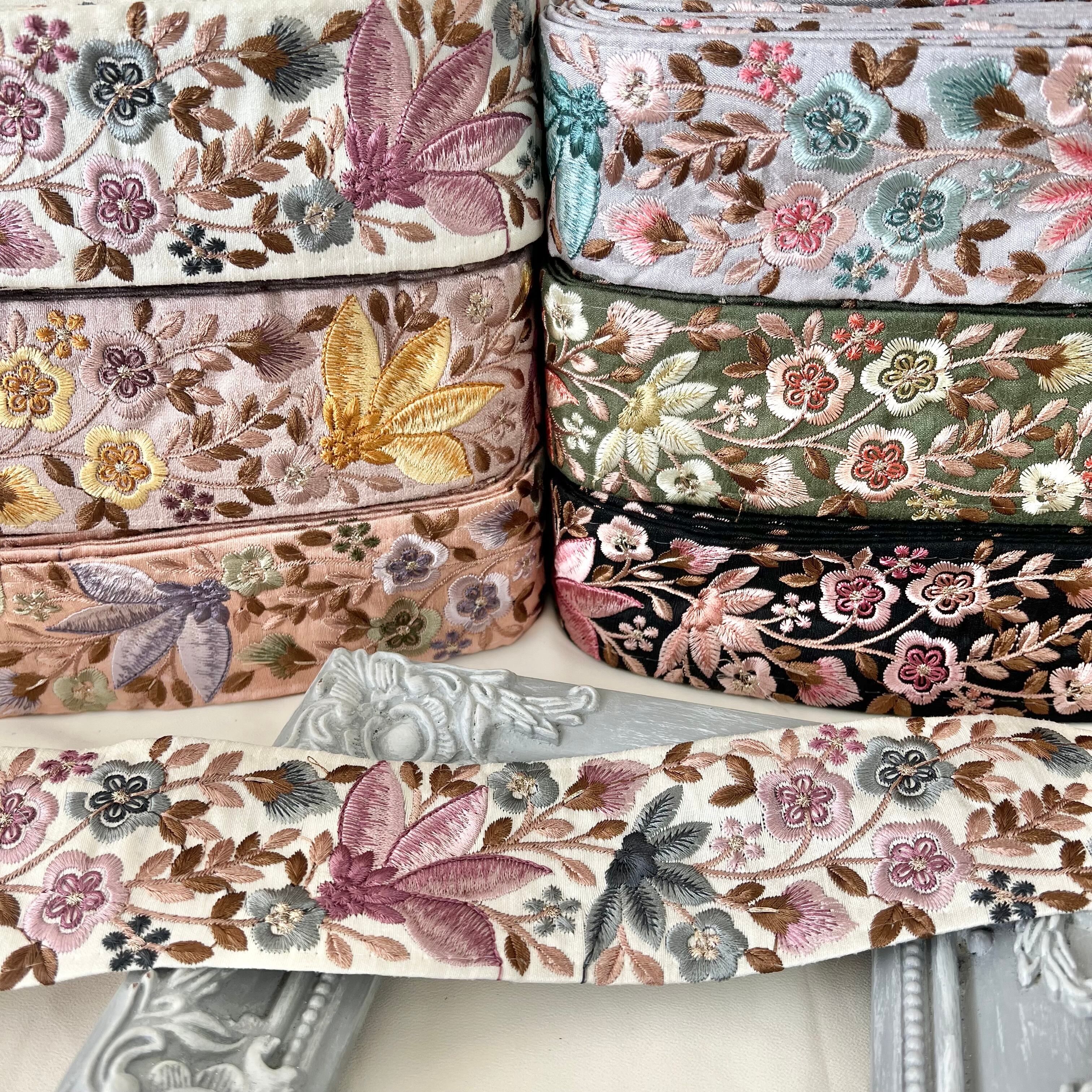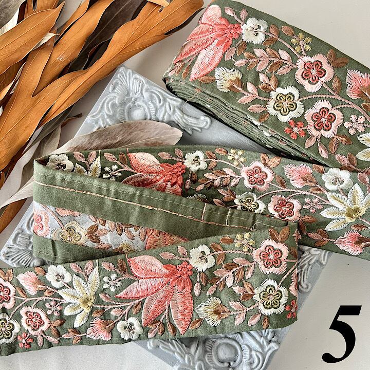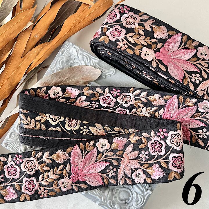 50cm インド刺繍リボン シルク 花柄 #ws35